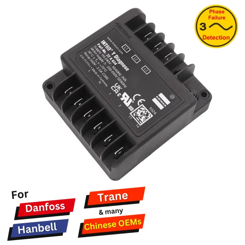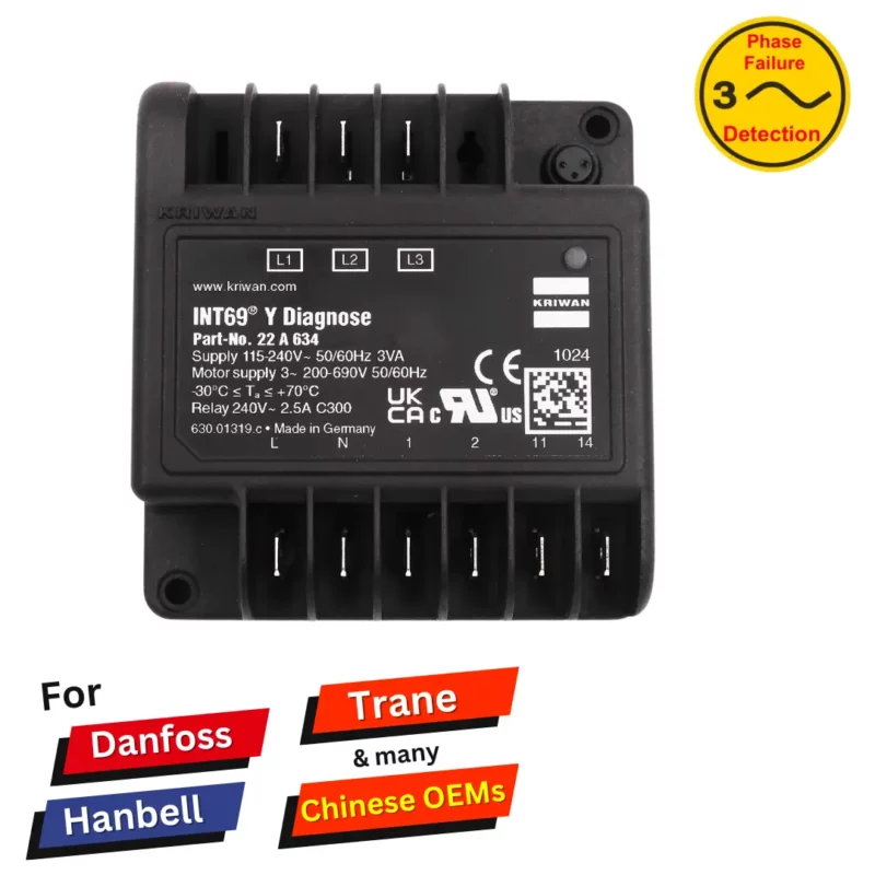The compressor protection Kriwan 22A634 INT69 Y Diagnose is a further development of the reliable KRIWAN motor protectors. Additional inputs for the phase monitoring as well as supplementary flexible-response protective functions help to improve the availability and extend the service life of a refrigeration system.