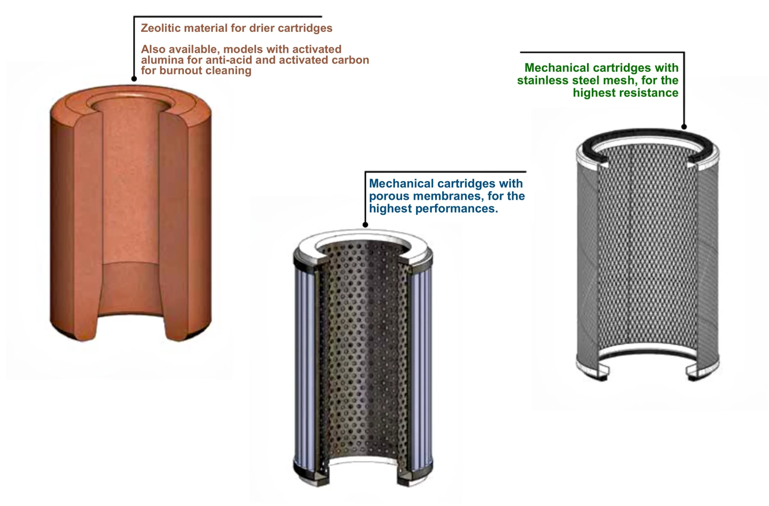 The model CSR48 are compact drier cartridges composed of zeolite material, to obtain a highly selective molecular sieve.